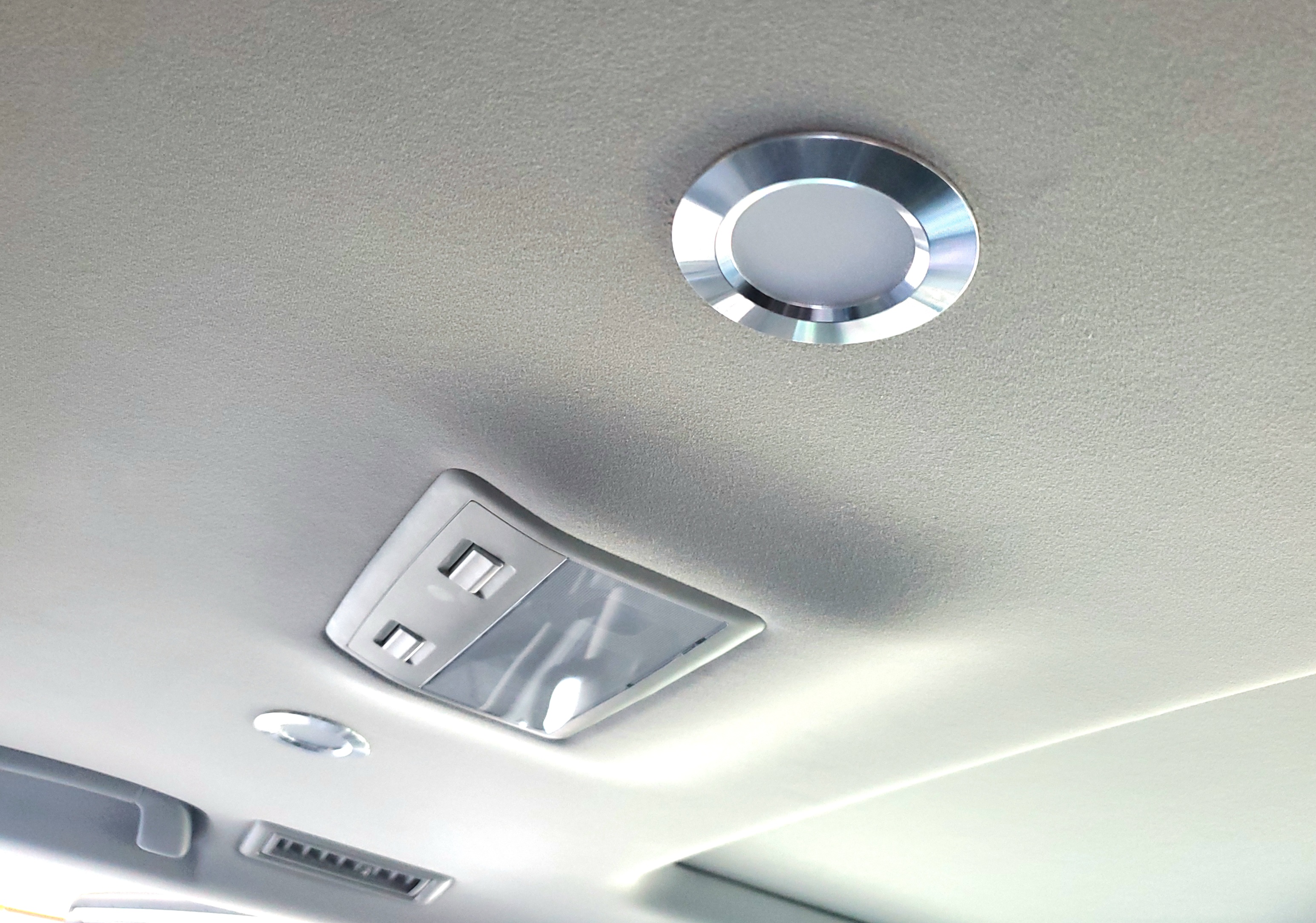 実用的にはリアシート上部、リアラゲッジに設置がお勧めです リアドアを開けると室内を明るく照らし出しますので特にお子様などが乗り降りする際に非常に便利です。 アルミフレームの薄型設計ですので純正然とした仕上がりとなります