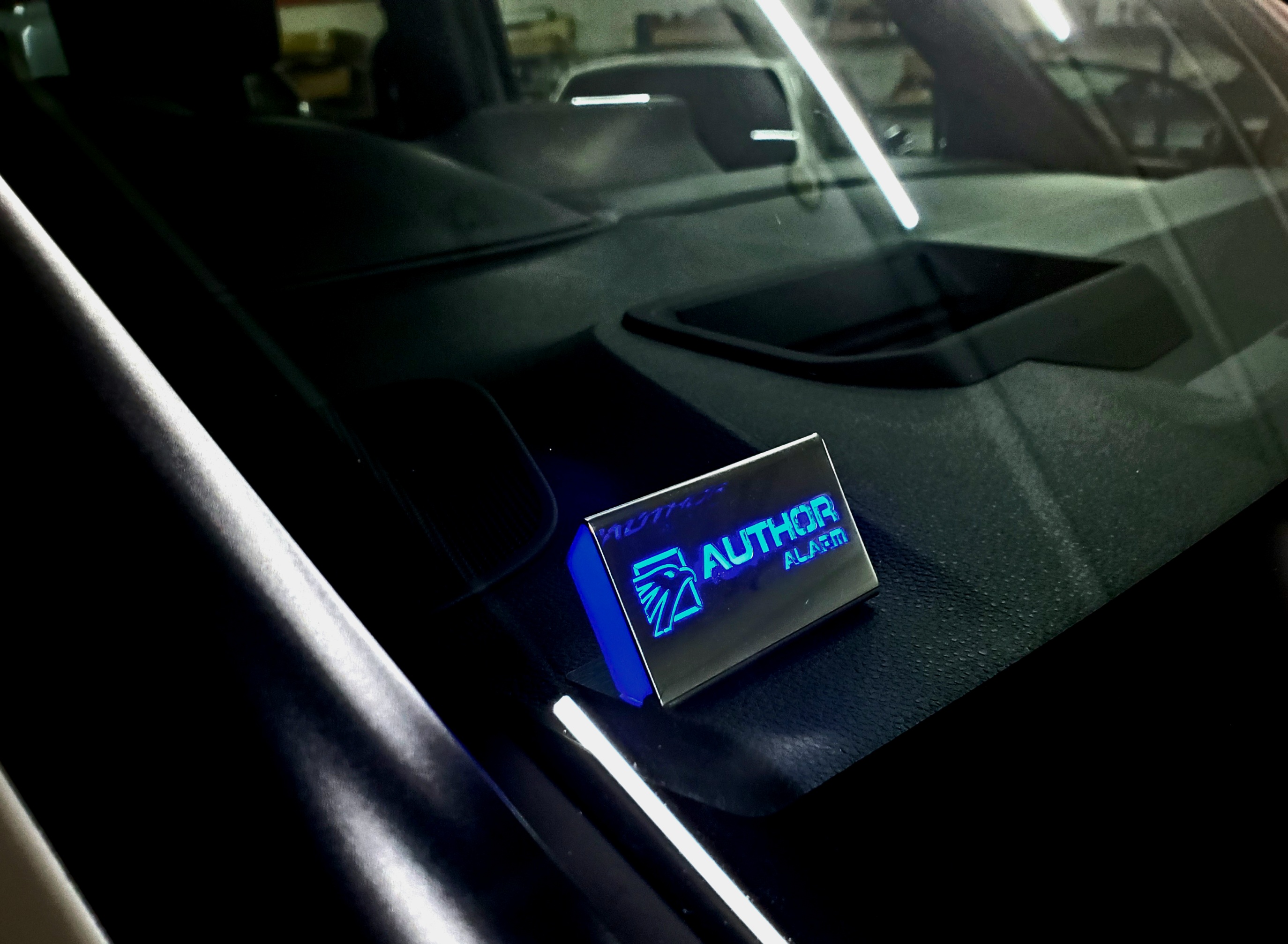 オーサーアラームの商品はシステム警戒中のLEDが別売となっています。 一番人気はダッシュボードに設置するステンレススキャナー。 オーサーもしくはイグラのロゴ入りデザイン。青、白のLEDカラーをお選びいただけます 装着をアピールする点滅LEDは窃盗犯に威嚇になります