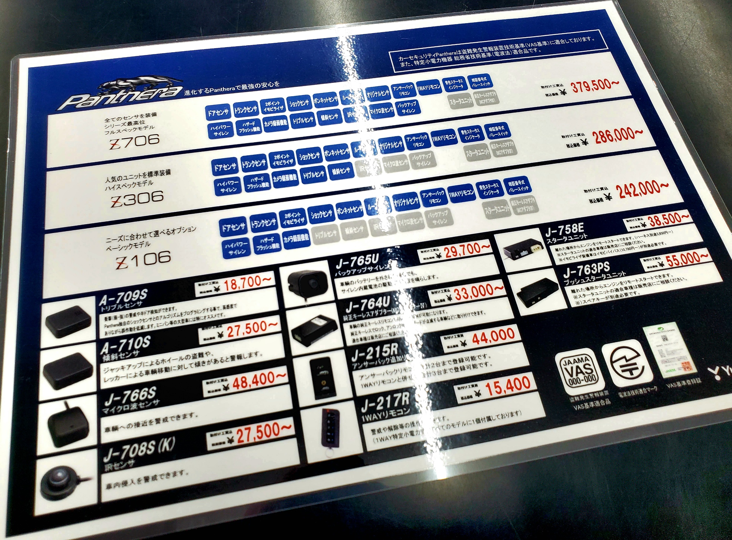 Z306単体での取り付けメリットとして不正なドア開放には即座にサイレンが鳴る点です。 デメリットとしてはスマートキーにてロックを行った後、パンテーラリモコンにてセキュリティを作動させますので手順が増える事でしょうか。 セキュリティ作動させるにあたり様々な操作方法がございますので、分かり易くご説明しますのでご安心下さい