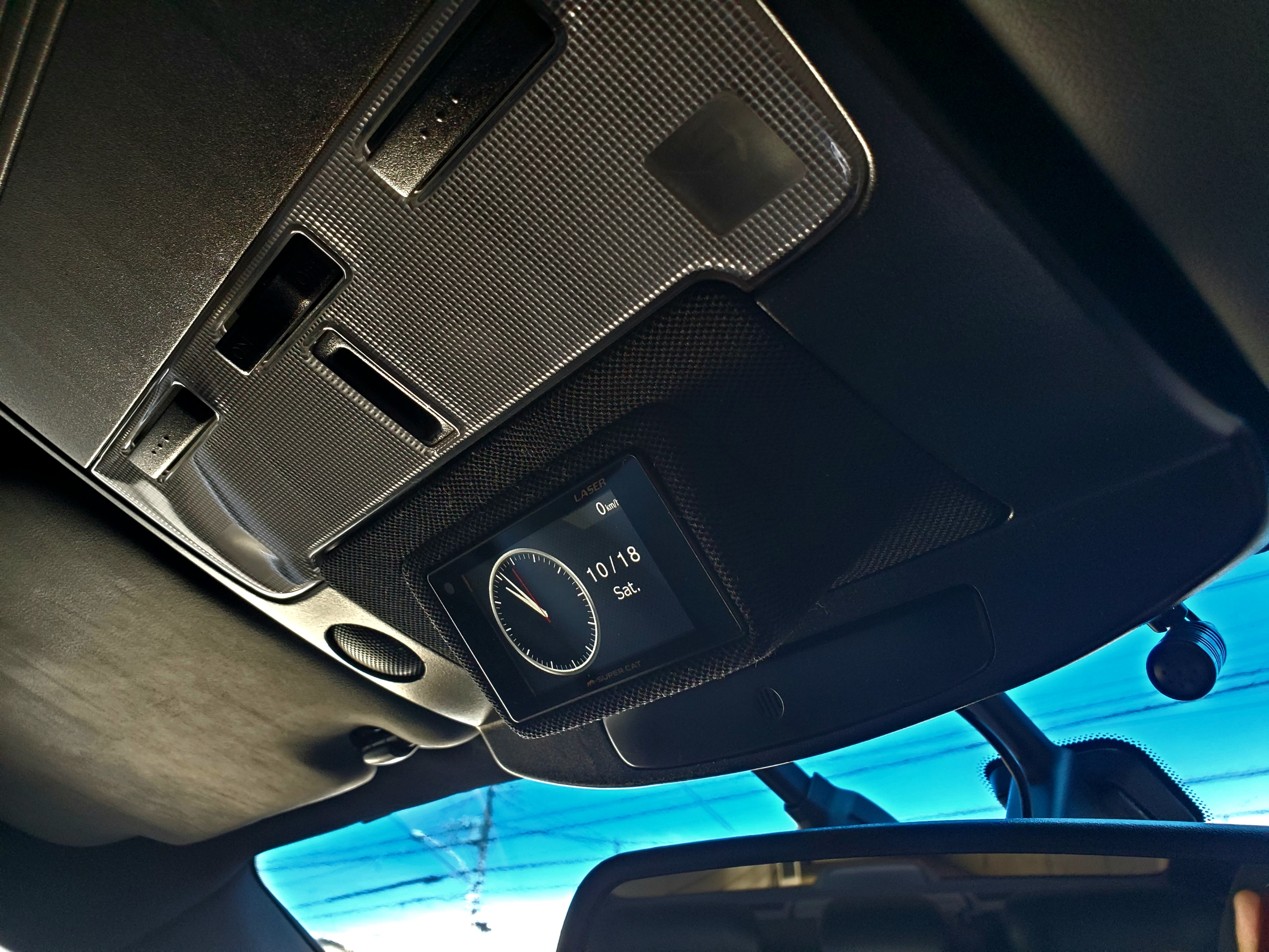 ルームランプの空きスペースにユピテルレーダー探知機を埋め込み加工 アンテナ別体タイプのプレミアムレーダーは同様の加工が可能です マットブラック塗装、レーダーの台座は黒メッシュ生地を使用しております